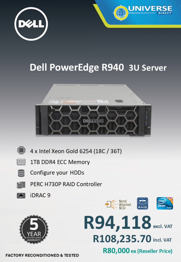 DELL R940 4 X 18C/36T CPU 6254 1TB/NOHDD
